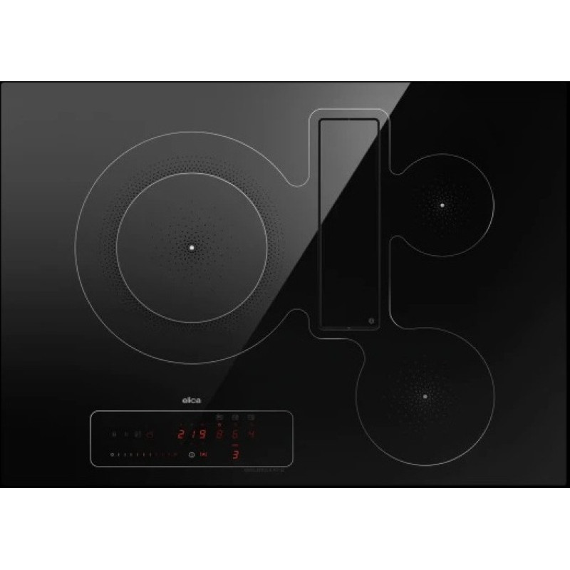72см, встраиваемая варочная панель индукция с вытяжкой, сенсорное управление, 3 конфорки, зона extra large шириной 30 см, мощность 7,2 кВт, быстрый нагрев (Booster), блокировка от детей, автоматика закипания, индикатор остаточного тепла, (вытяжка 1200м3, 4 скорости, 42 - 68 дБ, таймер, угольные фильтры заказываются дополнительно, жироулавливающие алюминиевые фильтры) черное стекло, пр-во Италия