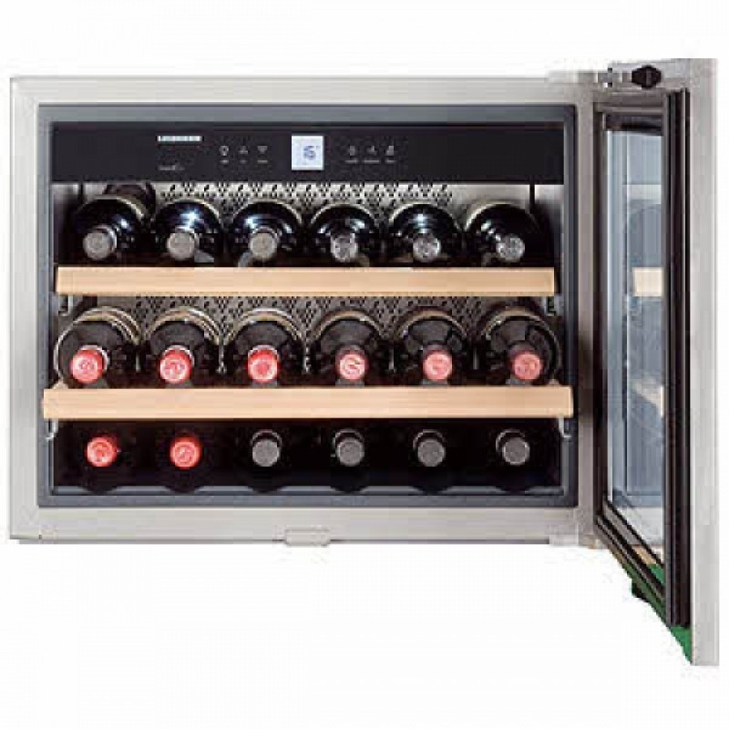винотека, 18 бутылки, 46л, (В*Ш*Г) 440x557x558мм, поддерживаемая темп. 5-20 градусов, 1 темп. зона, эл.управление, 3 дерев.полки, 2 на телескоп. шинах, сторона открывания двери правая, перенавешиваемая, индикация температуры, светодиоды, цвет серебристый, пр-во Австрия