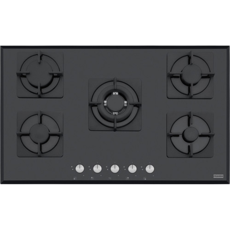 86см, 5 газовых конфорок на стекле (1 повышенной мощности), газ-контроль, автоподжиг, чугунные решетки, цвет черный, пр-во Турция