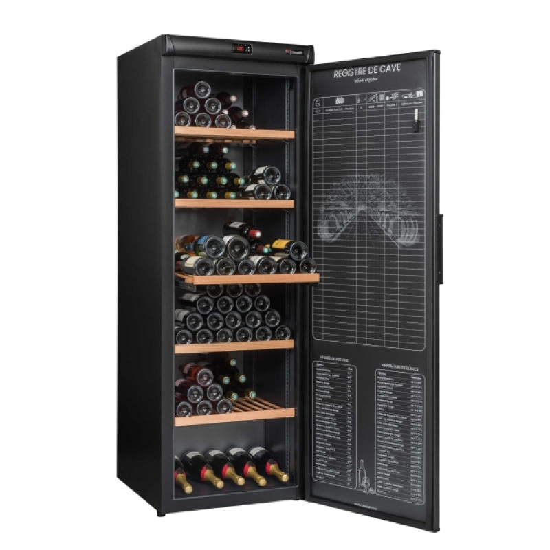 Винный шкаф (винный погреб) для вызревания и консервации вина на 264 бутылки. Создает идеальные условия для дозревания вина, электронная регулировка, монозона 5-18°C, цифровой дисплей, антивибрационная стистема. Регулируемая влажность и система фильтрации (угольный фильтр). Зимняя система: поддерживает положительную температуру в вашем винном шкафу в зимний период, можно устанавливать в неотапливаемом помещении. 4+1 выдвижных деревянных полки , 2 регулируемые ножки (4 см), 2 колеса, массивная дверь с внутренней шелкографией, размер ВШГ 186*62*71см, цвет черный, пр-во Португалия